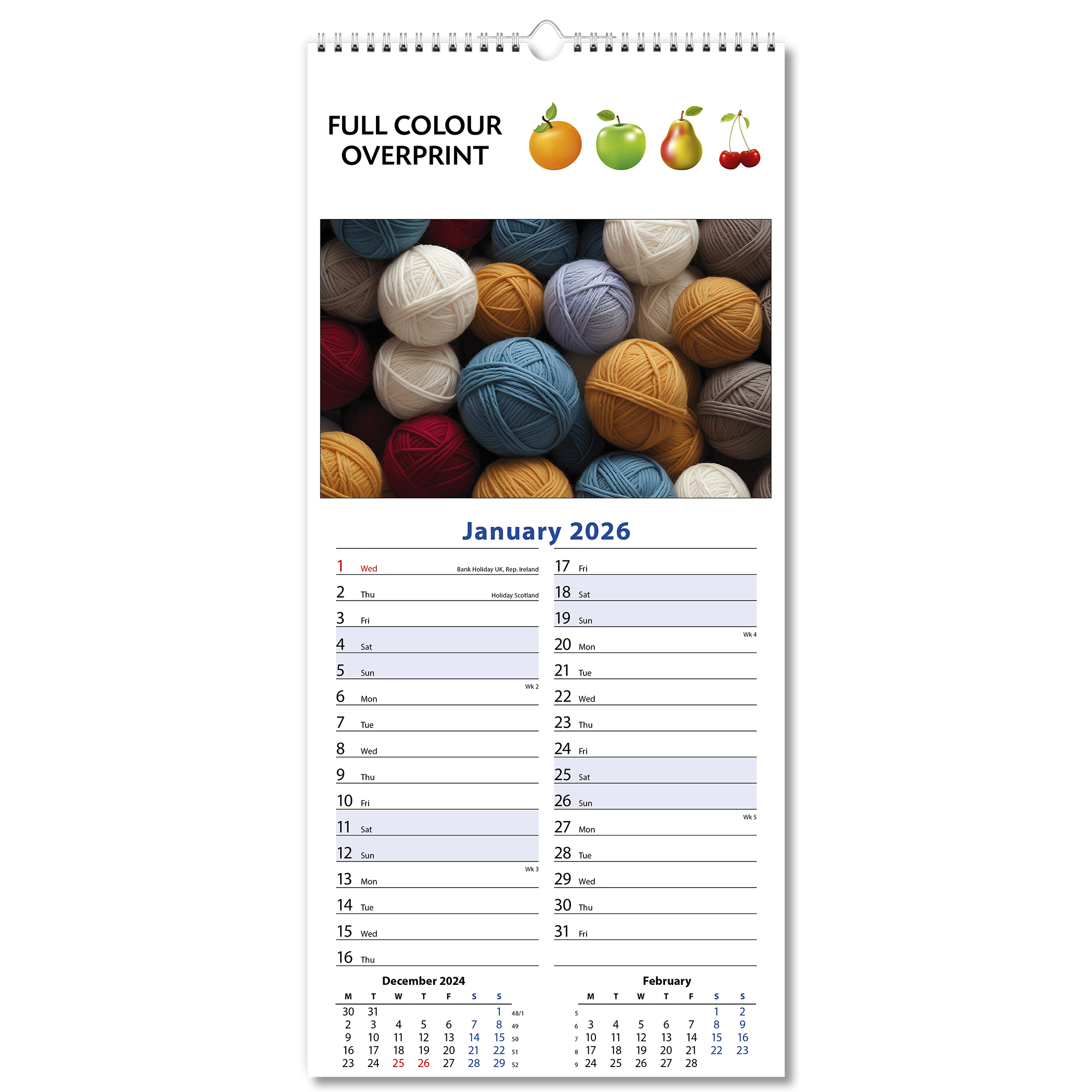 Small Slimline Templated Bespoke Calendar
