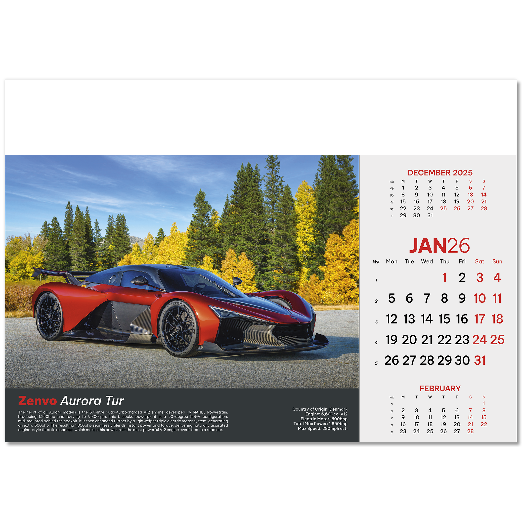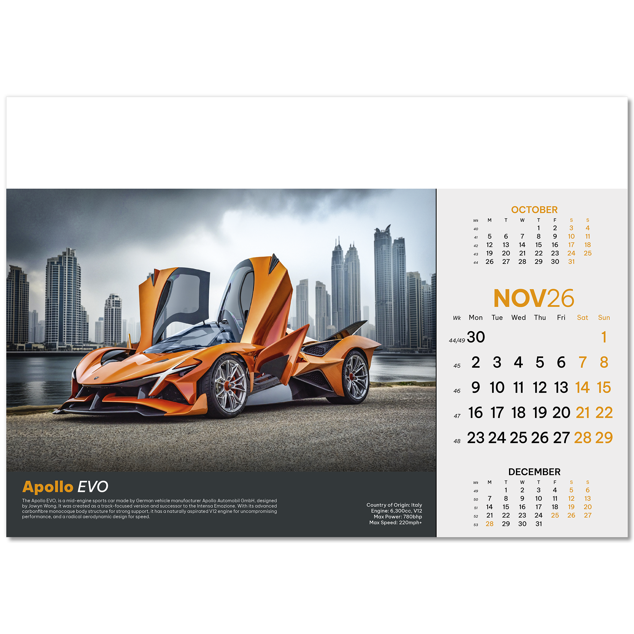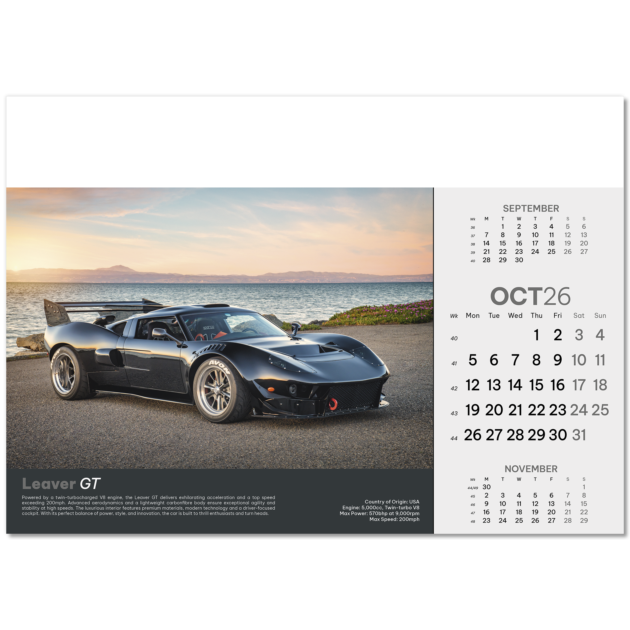 Supercars Wall Calendar